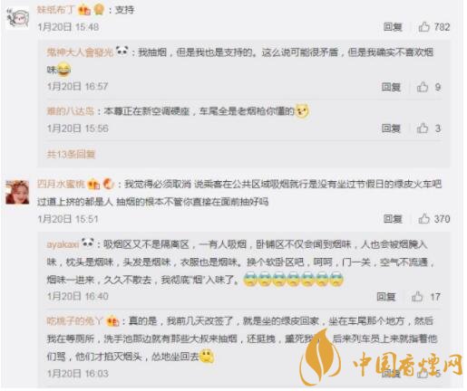 網(wǎng)友對(duì)列車全面禁煙的評(píng)論截圖