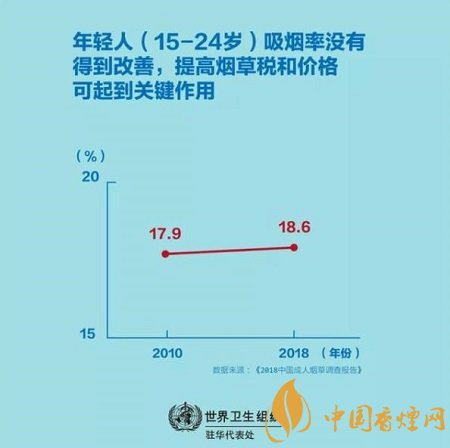 當(dāng)前吸煙者在注意到煙盒包裝上的健康警示后考慮戒煙的比例沒有變化,2010年為36.4%,而2018年為36.3%。這表明當(dāng)前的煙盒包裝上的健康警示在警告吸煙的危害方面可能并無效果。更令人擔(dān)憂的是,年輕人(15-24歲)的吸煙率沒有得到改善。2010年為17.9%, 而2018年為18.6%,此外,煙草價格仍然很便宜,每包20支卷煙的價格中位數(shù)僅為9.9元(約1.4美元)。