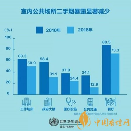 最近發(fā)布的2018年中國成人煙草調(diào)查顯示,過去十年中國控?zé)煿ぷ魅〉昧酥匾M展。與八年前相比,現(xiàn)在中國人遭受二手煙危害的幾率要小很多,室內(nèi)公共場所二手煙暴露的顯著減少就證明了這一點,比如工作場所(63.3%降至50.9%),政府大樓(58.4%降至31.1%),醫(yī)療設(shè)施(37.9%降至24.4%),公共交通(34.1%降至12.9%),甚至餐廳(88.5%降至73.3%)。