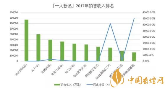 以銷售收入評價,「十大新品」2017年合計銷售收入達(dá)到354.3億元,同比增加139.3億元,增長64.7%,平均單箱批發(fā)均價達(dá)到6.2萬元;銷售收入最高的「南京(雨花石)」達(dá)到77.4億元,最少的「黃鶴樓(硬銀紫)」只有16.3億元;單箱批發(fā)均價最高的「南京(雨花石)」達(dá)到13.25萬元,最低的「黃鶴樓(硬銀紫)」只有3.25萬元。