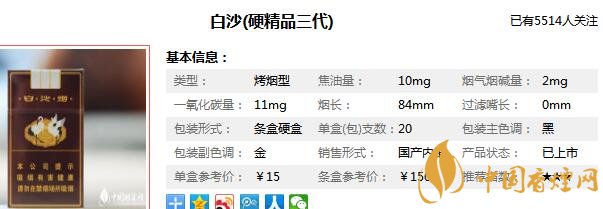 白沙煙精品三代參數(shù)信息