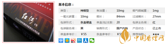 個人覺得V8比和諧玉溪好,口感比和諧甘甜,味道醇和,特有的紅河煙草香,這煙很柔,煙霧也比較厚重,口感各方面都不錯,就是有點小貴。經(jīng)香煙網(wǎng)小編市場調(diào)查紅河硬v8售價為55元/包。