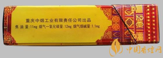 類型 :烤煙型 焦油量 :11mg 煙氣煙堿量 :1.1mg 一氧化碳量 :12mg