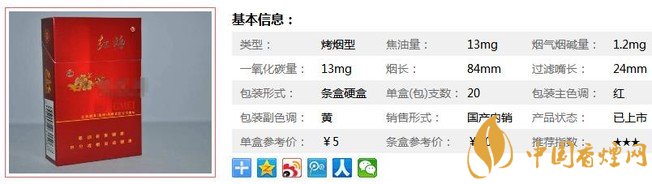 紅梅硬虹香煙,這款煙在煙民中的評(píng)價(jià)中比較好,是一款經(jīng)典老煙,抽過的人普遍對(duì)這款煙留下了深刻的印象。這款煙現(xiàn)如今已經(jīng)非常難買到了,20元以內(nèi)的香煙恐怕沒幾個(gè)能超越它??诟泻?,性價(jià)比高,值得推薦。經(jīng)香煙網(wǎng)小編市場(chǎng)調(diào)查紅梅硬虹售價(jià)為5元/包。