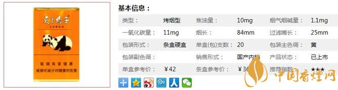 | 類(lèi)型 :烤煙型 | 焦油量 :10mg | 煙氣煙堿量 :1.1mg | 一氧化碳量 :11mg |