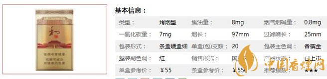 | 類型 :烤煙型 | 焦油量 :8mg | 煙氣煙堿量 :0.8mg | 一氧化碳量 :7mg |