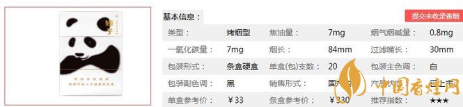 類型 :烤煙型 焦油量 :7mg 煙氣煙堿量 :0.8mg 一氧化碳量 :7mg
