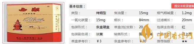 西湖明珠煙支長84mm,過濾嘴長:20mm,煙氣較沖,越抽到后面煙氣越濃,口感濃厚,降焦技術一般,焦油量較高,這款煙比較適合老煙民,新煙民可能抽不慣。下面我們一起來看西湖明珠的參數(shù)信息:焦油量:15mg 煙堿量:1.2mg 一氧化碳量:15mg