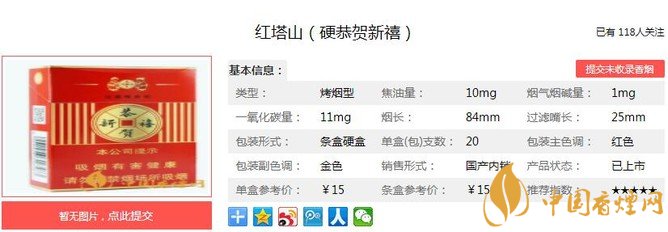 恭賀新禧產(chǎn)品明確定位婚慶市場,以婚慶煙消費(fèi)為突破口,逐步拓展禮品煙市場,最終做到中國喜慶市場的領(lǐng)導(dǎo)品牌,全新的口味和包裝,將給消費(fèi)者送上一份驚喜,是婚禮上很受歡迎的一款喜慶香煙。經(jīng)香煙網(wǎng)小編市場調(diào)查紅塔山硬恭賀新禧售價(jià)為15元/包。
