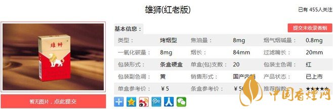雄獅紅老版口感及參數(shù) 5元檔卷煙的領(lǐng)跑者