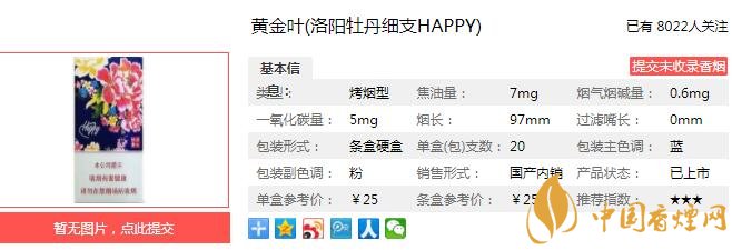 三、黃金葉洛陽牡丹細(xì)支HAPPY香煙參數(shù)