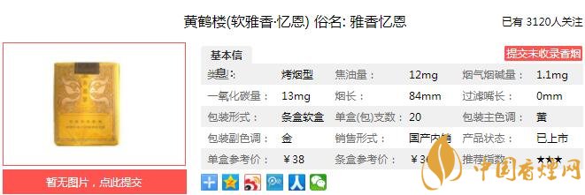 一、黃鶴樓雅香憶恩香煙價(jià)格