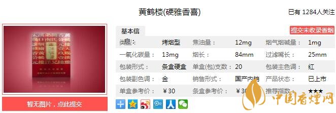 一、黃鶴樓(硬雅香喜)香煙價(jià)格