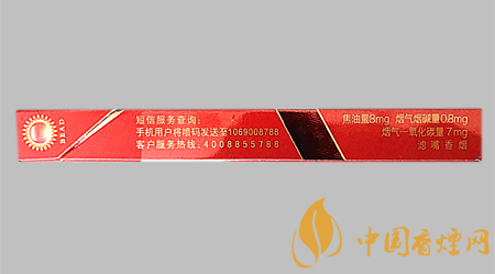 類型 :烤煙型 焦油量 :8mg 煙氣煙堿量 :0.8mg 一氧化碳量 :7mg
