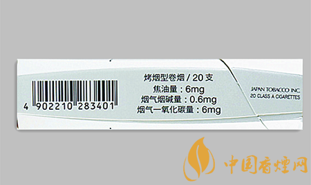 | 類型 :烤煙型 | 焦油量 :6mg | 煙氣煙堿量 :0.6mg | 一氧化碳量 :6mg |