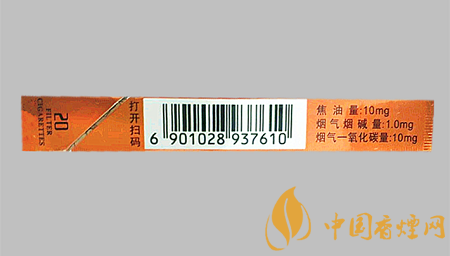 類型 :烤煙型 焦油量 :10mg 煙氣煙堿量 :1mg 一氧化碳量 :10mg