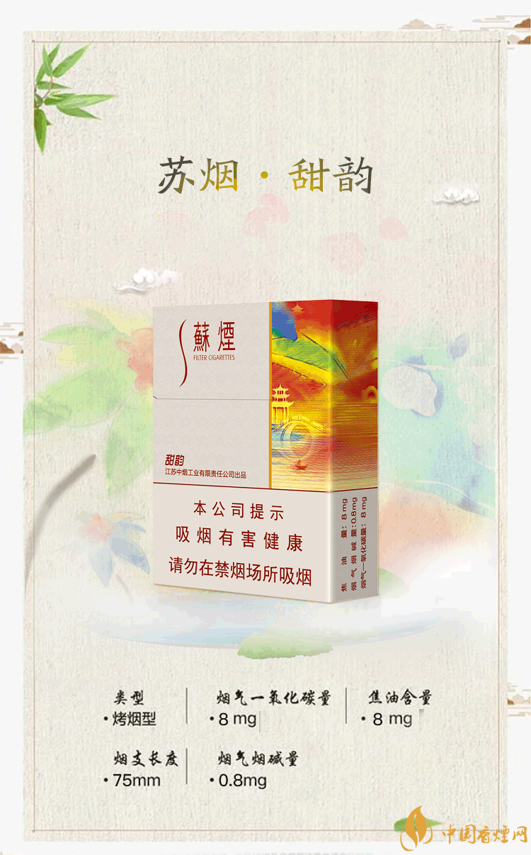 蘇煙(甜韻)售價(jià)為32元/包。蘇煙系列除了前面三款20元左右的香煙,就只有這款甜韻屬于價(jià)格比較低的了。包裝有種古色古香的感覺,就是感覺不是很協(xié)調(diào),可能是本人欣賞不來??诟蟹矫妫瑹煔鈩蓬^適中,香氣豐富飽滿,煙氣細(xì)膩綿長而富有層次感,作為低焦香煙抽起來還不錯(cuò)。