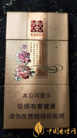 花悅的圖案設(shè)計(jì)很漂亮,金黃色為主色調(diào),包裝一改以往的素雅,變得十分華麗。正面中上部猶如一幅字畫一樣的設(shè)計(jì),而且底色的金還閃著亮晶晶的感覺,正上方是雙喜香煙的品牌名,下面是各種不同字體的“喜”字!旁邊是一團(tuán)花簇,而且花朵的邊緣有金色的勾勒。下面是警示標(biāo)語(yǔ)。