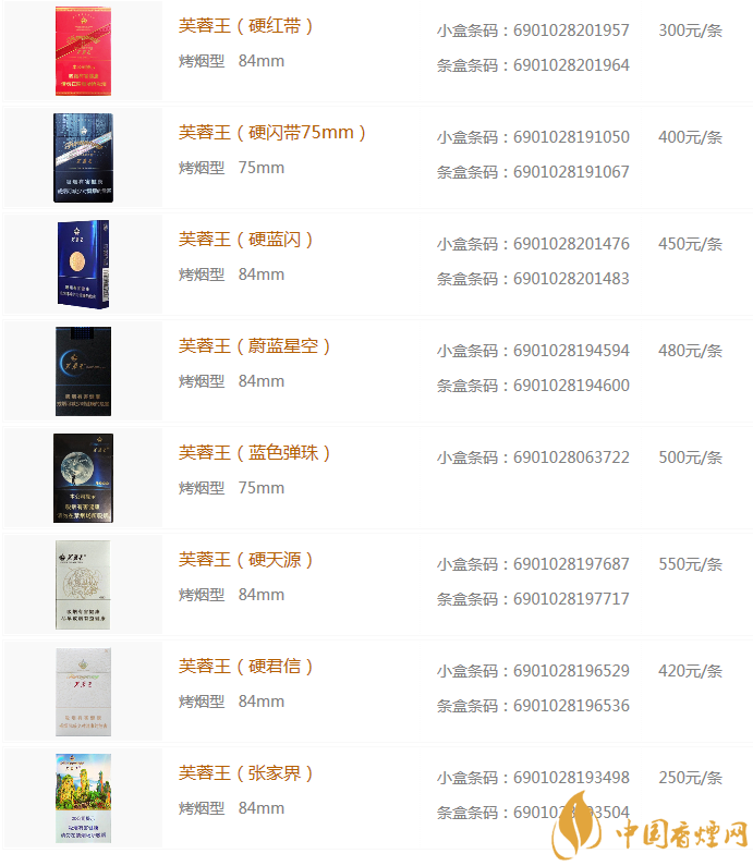 2020芙蓉王種類及價(jià)格
