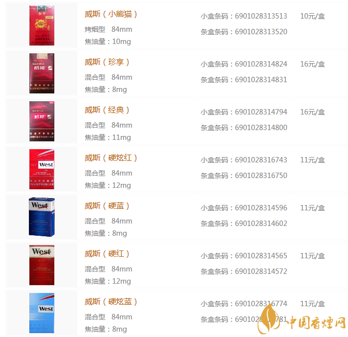 威斯香煙價(jià)格表圖