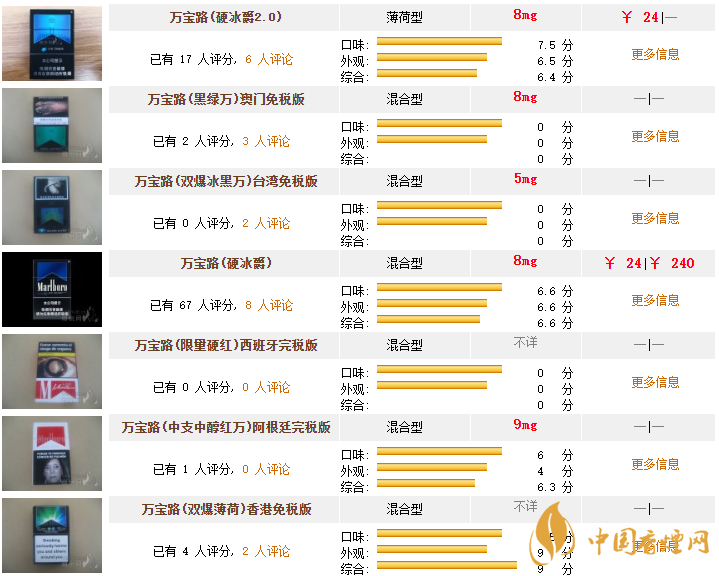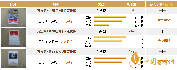 萬寶路香煙價格圖表 2025萬寶路最新價格