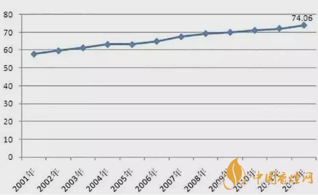 根據(jù)前瞻產(chǎn)業(yè)研究院發(fā)布的《2013-2017年中國煙草制品行業(yè)產(chǎn)銷需求與投資預(yù)測分析報告》,2001-2012年,中國煙草制品行業(yè)毛利率維持在57%以上的較高水平,且呈現(xiàn)逐年上升的態(tài)勢,到2012年行業(yè)的毛利率達(dá)到了74.06%。