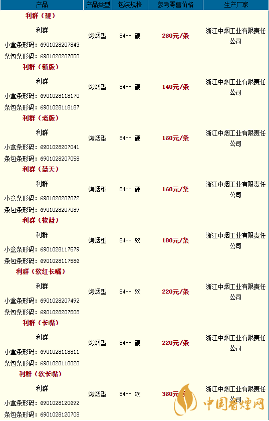 2020利群香煙全部系列價(jià)格一覽