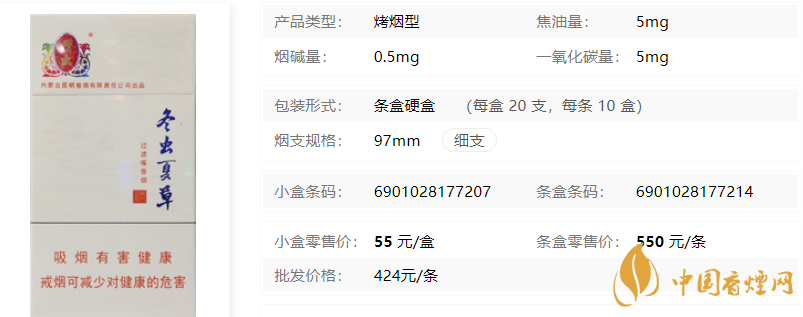 在了解了2020冬蟲夏草(和潤(rùn))香煙多少錢一包之后,為了大家能更詳見的了解此煙,小編特意將冬蟲夏草(和潤(rùn))香煙核心參數(shù)進(jìn)行了整理,以便于對(duì)它進(jìn)行更深入的了解。