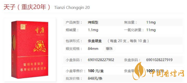 天子重慶20年香煙價格表一覽2021市場價