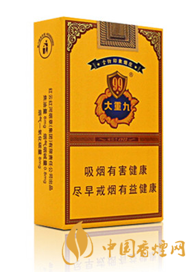 細(xì)支大九采用硬盒包裝,外觀印刷設(shè)計(jì)沒有什么改變,無雜質(zhì)的金礦黃襯托盾牌花邊“大重九”,背面是麥穗包裹99,簡(jiǎn)單大氣的包裝卻不失豪華端莊,那么這款大重九多少錢一包,它的價(jià)格為100元/包。