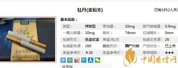 短支金牡丹多少錢一包 短支金牡丹香煙價(jià)格表
