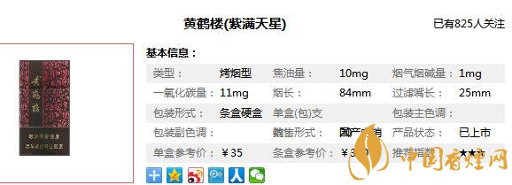 黃鶴樓香煙參數(shù)信息