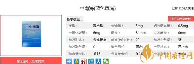 一、中南海藍色風尚香煙價格
