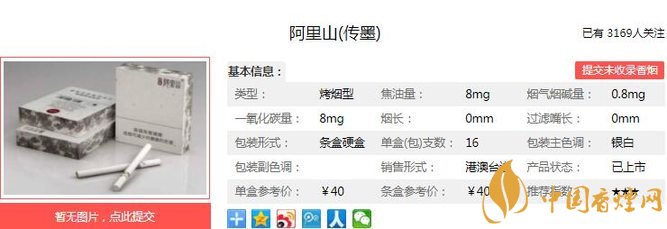 阿里山傳墨煙支長84mm,過濾嘴長27mm,優(yōu)秀配方式藝師配方,精選津巴布韋優(yōu)質(zhì)煙葉原料,手工選葉,自然醇化,煙氣醇和飽滿,煙香細(xì)膩豐富,吸味純正,三香合一。下面我們一起來看阿里山傳墨的參數(shù)信息:焦油量:8mg 煙堿量:0.8mg 一氧化碳量:8mg