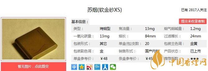 以上便是由香煙網(wǎng)小編為大家介紹的關(guān)于蘇煙軟金砂XS口感測評 蘇煙軟金砂XS獨家口感測評的相關(guān)信息,想要了解更多有關(guān)內(nèi)容請點擊:黃山大紅方印口感測評 黃山大紅方印獨家口感分析
