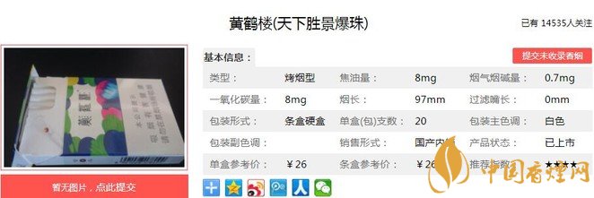 一、黃鶴樓天下勝景爆珠香煙價格