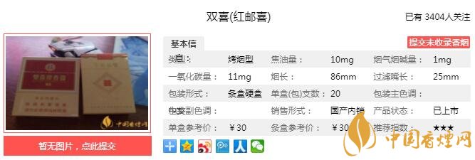 雙喜紅郵喜煙支長86mm,過濾嘴長25mm,雙喜紅郵喜以“無外香,更天然”為技術設計理念,綜合運用工藝生香最新技術,在進一步增強豐富煙香、提升協(xié)調性的同時,煙氣更加綿長、柔軟,賦予其氣質不凡的個性。下面我們一起來看 雙喜紅郵喜的參數(shù)信息:焦油量:10mg 煙堿量:1.0mg 一氧化碳量:11mg