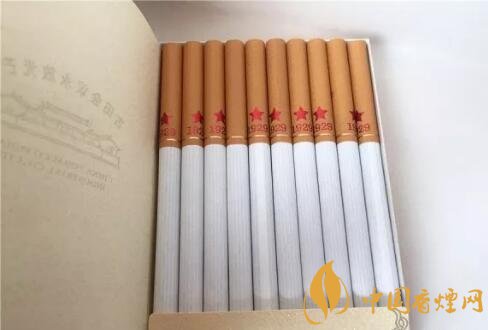 側(cè)開式煙盒設(shè)計(jì),煙盒蓋內(nèi)部是紅色并印著金色五角星和1929,煙支被一張很具有復(fù)古色彩的紙張覆蓋著,上面有八個(gè)大字“古田會(huì)議永放光芒”,給人一種看黨章的感覺,設(shè)計(jì)簡約而不簡單。經(jīng)香煙網(wǎng)小編市場調(diào)查古田金中支售價(jià)為50元/包。