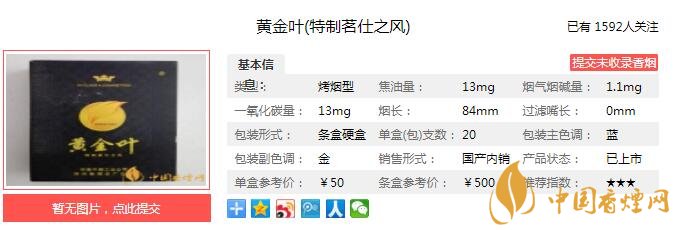 | 類型 :烤煙型 | 焦油量 :11mg | 煙氣煙堿量 :1mg | 一氧化碳量 :11mg |