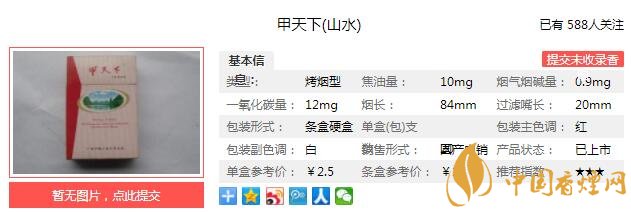 三、甲天下山水香煙參數(shù)