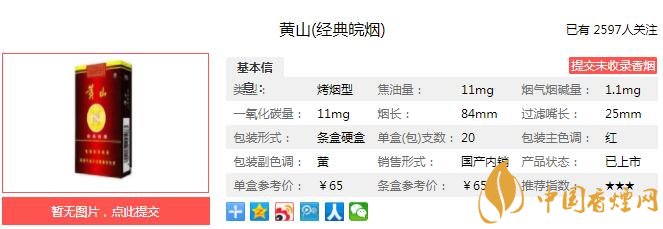 三、黃山經(jīng)典皖煙香煙參數(shù)