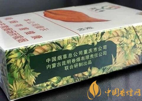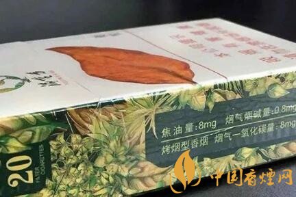 看名字,就能猜出個大概,這是重慶煙。只是煙盒正面圖案上一片大大的煙葉,卻令我不由得想到了“黃金葉”這個品牌。煙盒正面色調(diào)為乳白色又滲進了些淺綠色,整體為淺綠色,預(yù)示著這款香煙口味應(yīng)該偏淡。側(cè)面的理化指標(biāo)為8mg,也說明了這一問題。