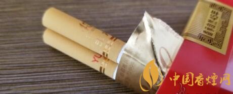 濾嘴下段,和現(xiàn)款零售版本沒有差別,下端兩道金色圓環(huán),其上一面是金色的玉溪字樣,另一面是金紅色的YUXI。