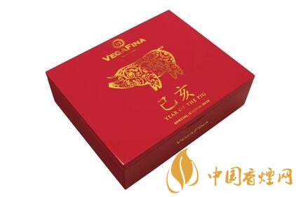 和很多中國新年設計一樣,這款雪茄采用紅色的盒子,帶有金色的裝飾,盒子采用翻蓋漆盒。每個盒子里面有16支雪茄。雪茄上帶有兩個標簽,一個是唯佳的標準標簽,一個是紅色印有一頭金色豬和中文乙亥的標簽。