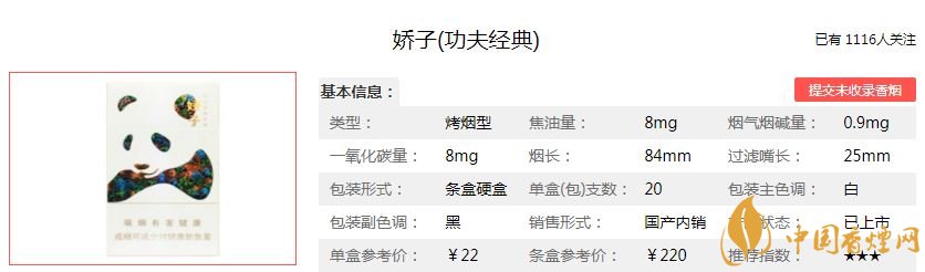 二、嬌子功夫經典香煙價格參數(shù)