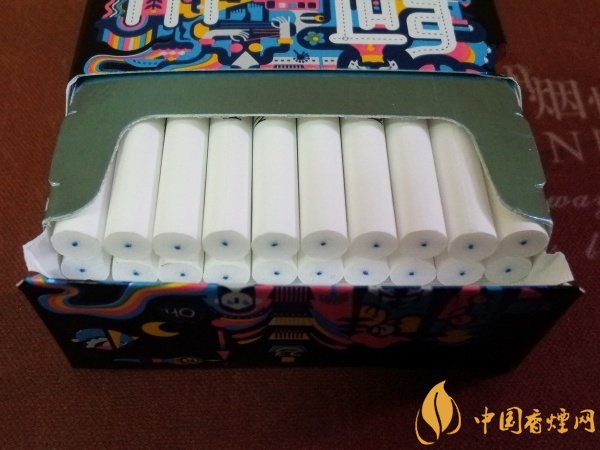 拉開淡藍色的錫箔紙,濾嘴里有藍色香線,拋開“可以將女士喜歡的花果味道帶進煙里”這一功能不提,單是煙嘴上那一點可視的繽紛色彩,香線都足以為這款細支煙加分。