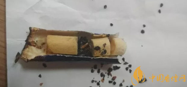 真龍海韻軟盒好抽嗎?煙支為普通煙長度,濾嘴也是正常長度。濾嘴紙一側(cè)印有真龍字樣,對應(yīng)那邊印有南海龍王字樣。濾嘴紙包裹濾芯非常緊,剪刀插不進(jìn)去,上圖是樓主用小刀劃開的第三支煙蒂。整支濾芯分四個部位,從煙葉接觸處點來算是:長海綿濾芯→活性炭→短海綿濾芯→硬海綿濾芯圈。