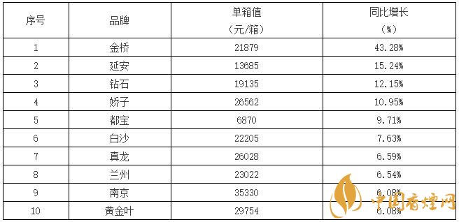 2017全國銷量第一的香煙((單箱) 2017中國銷量最好的煙排行榜表