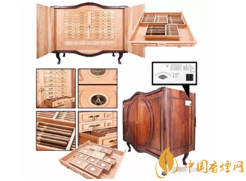 這盒雪茄是哈伯納斯為了紀念新千年發(fā)布的非常特別的手工雪茄保濕柜,雪茄柜卡斯特羅給簽的名。總共只發(fā)行了21個,都帶有獨立編號。每一個雪茄柜都內置一個電子控溫度系統(tǒng)和加濕系統(tǒng),每個箱子有20個獨立的大抽屜,每個抽屜里面又有多個獨立的小箱子。