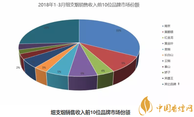 1、如圖所示2018細(xì)支煙排行榜(銷量)圖:在2018第一季度中國細(xì)煙排行中1-3月細(xì)支煙銷量前10名品牌市場份額一目了然,因此2018第一季度細(xì)支煙品牌銷量排行榜:第一名南京、第二名黃鶴樓、第三名黃金龍、第四名:黃金葉、第五名:貴煙、第六名:長白山、第七名:云煙、第八名:泰山、第九名:嬌子第十名:芙蓉王